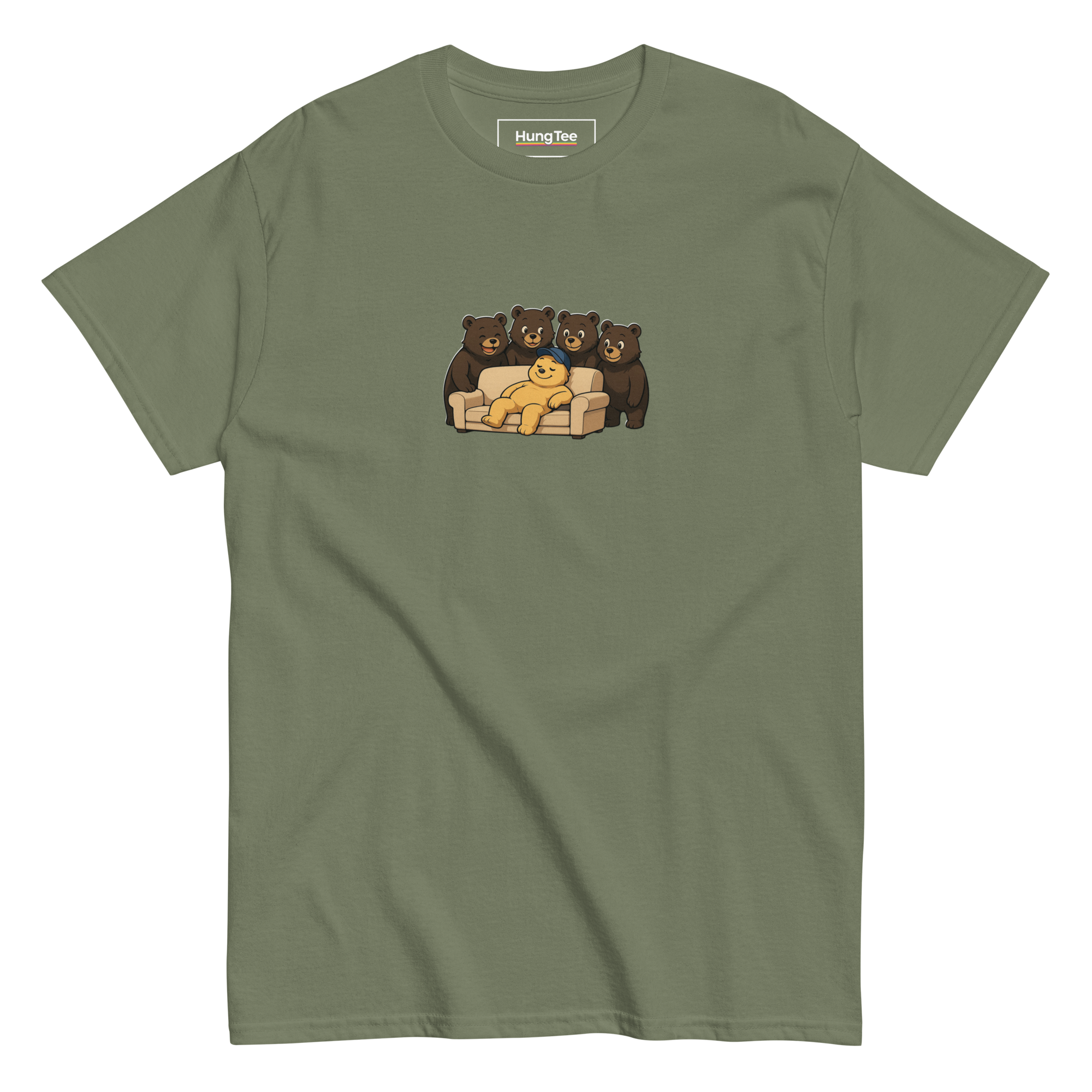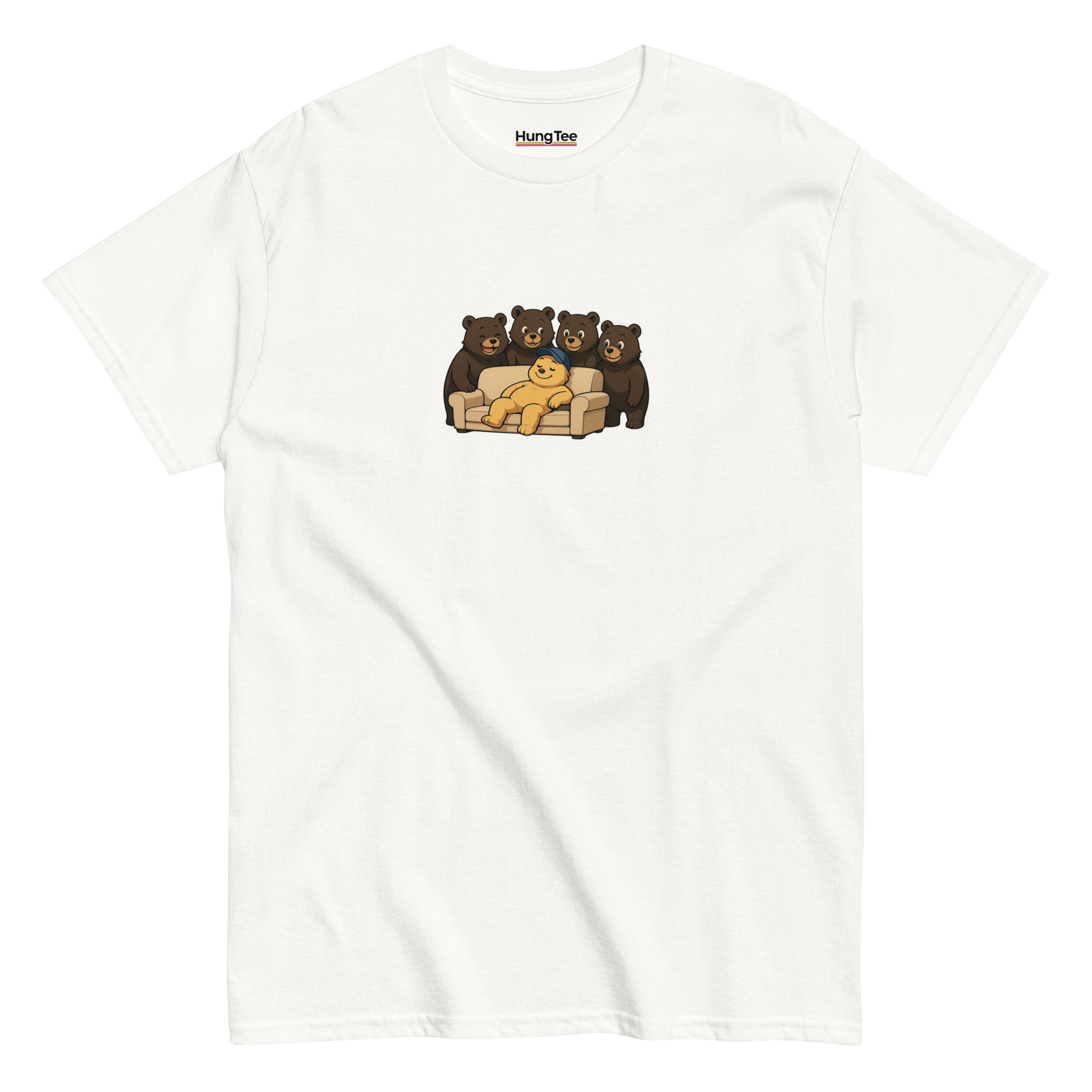 The “Hot Seat” tee is for when you want structure without feeling like you’re trying too hard. Sharp enough to pull together a layered fit, soft enough for couch naps, and neutral enough that even Papa Bear would approve. It’s the rare piece that actually fits, which is more than I can say about half the twinks who claim they’re “versatile.”