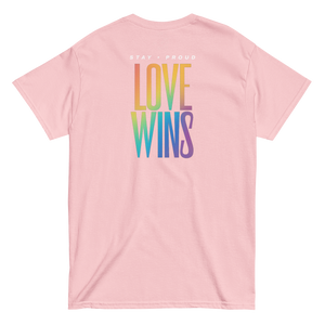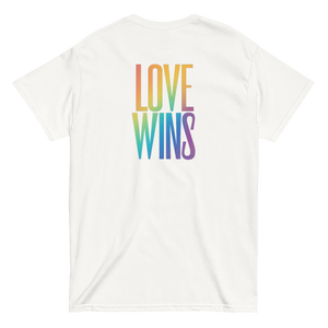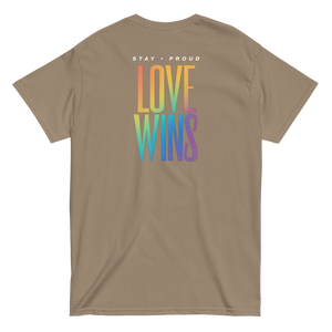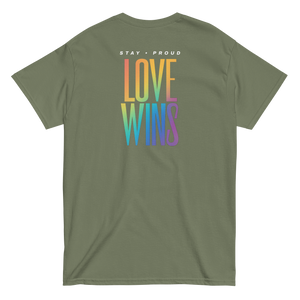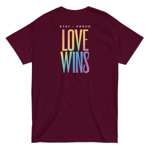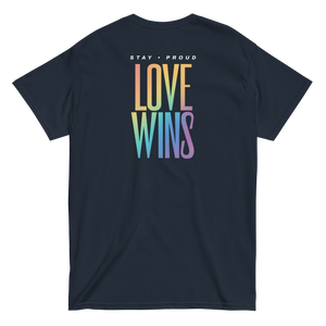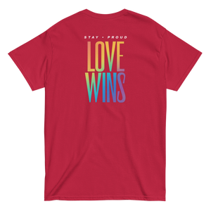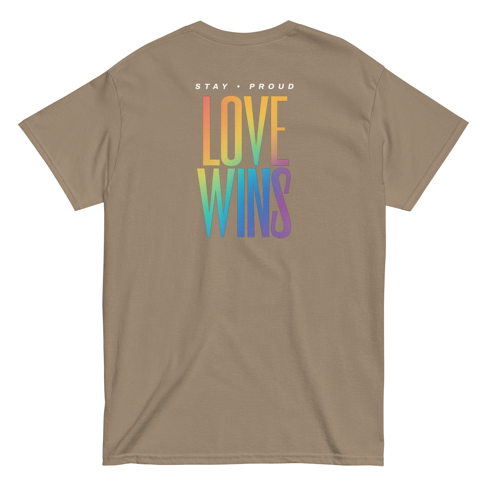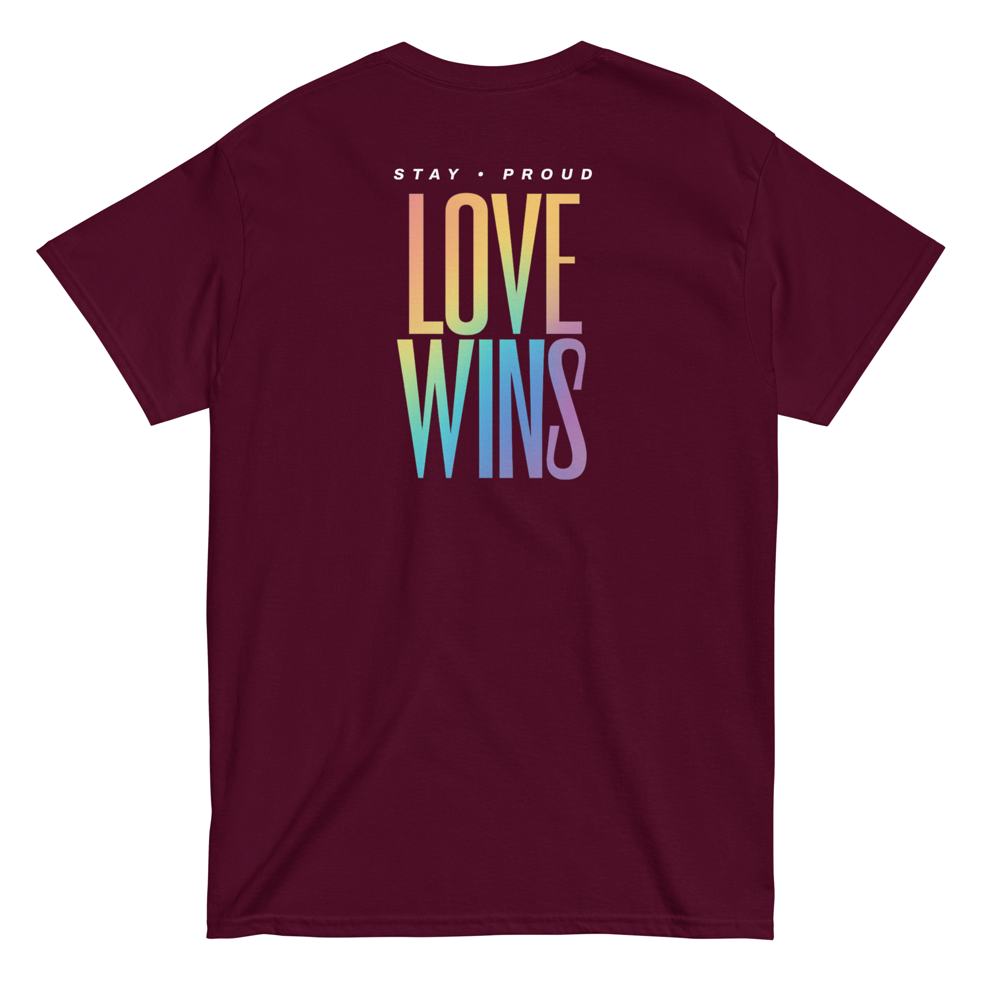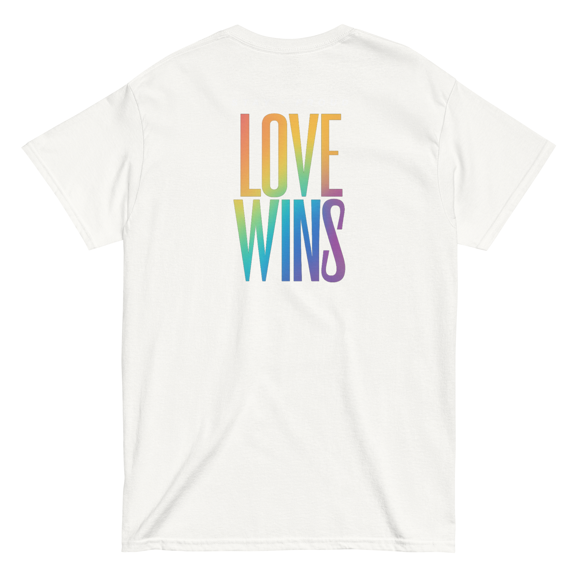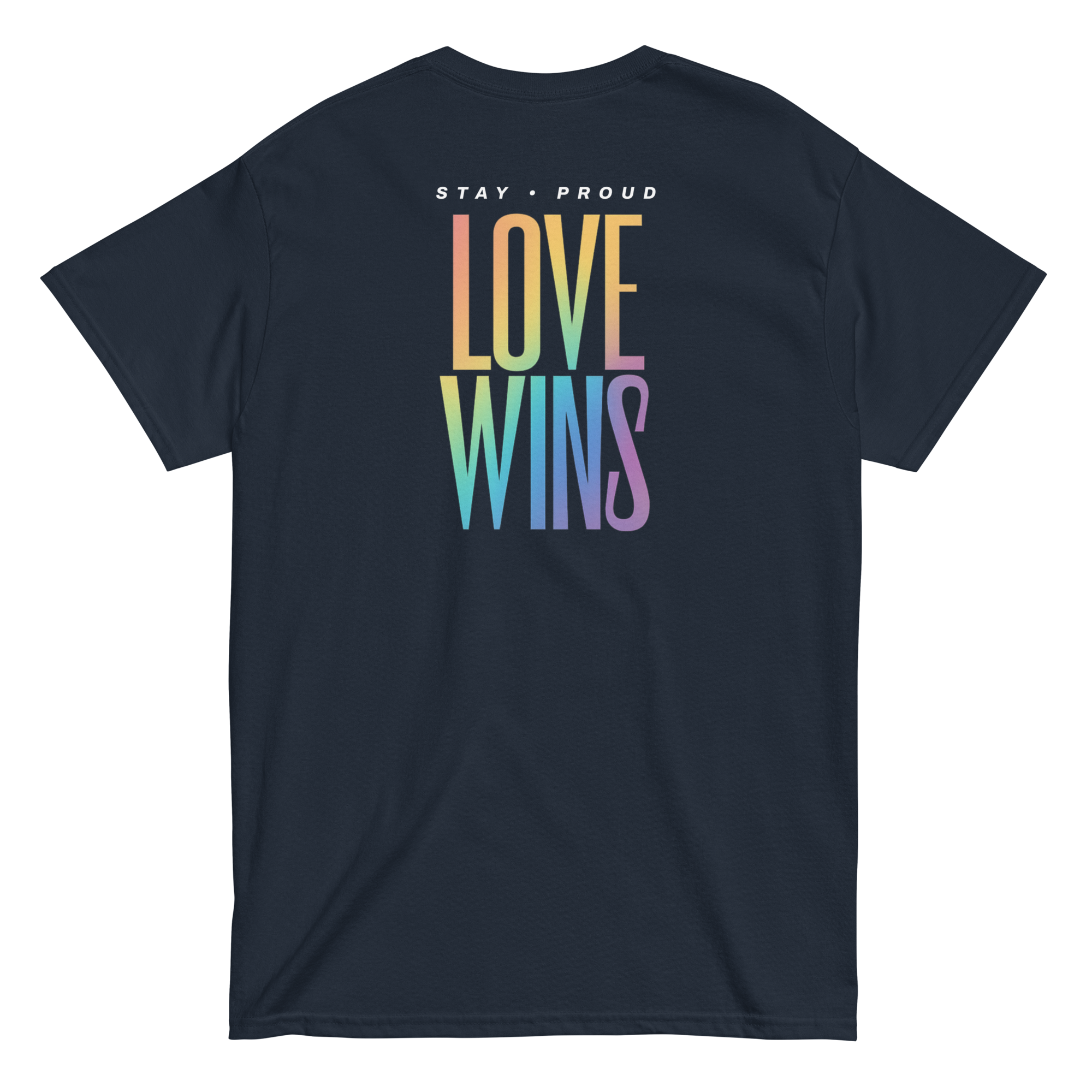 This tee is the kind of reminder you actually want shouted from behind. Up front it’s quiet, simple, and classic, but the back blooms with rainbow typography spelling out LOVE WINS. It’s celebratory, unapologetic, and way more reliable than that guy who swore he’d “totally be at Pride this year” and then ghosted.