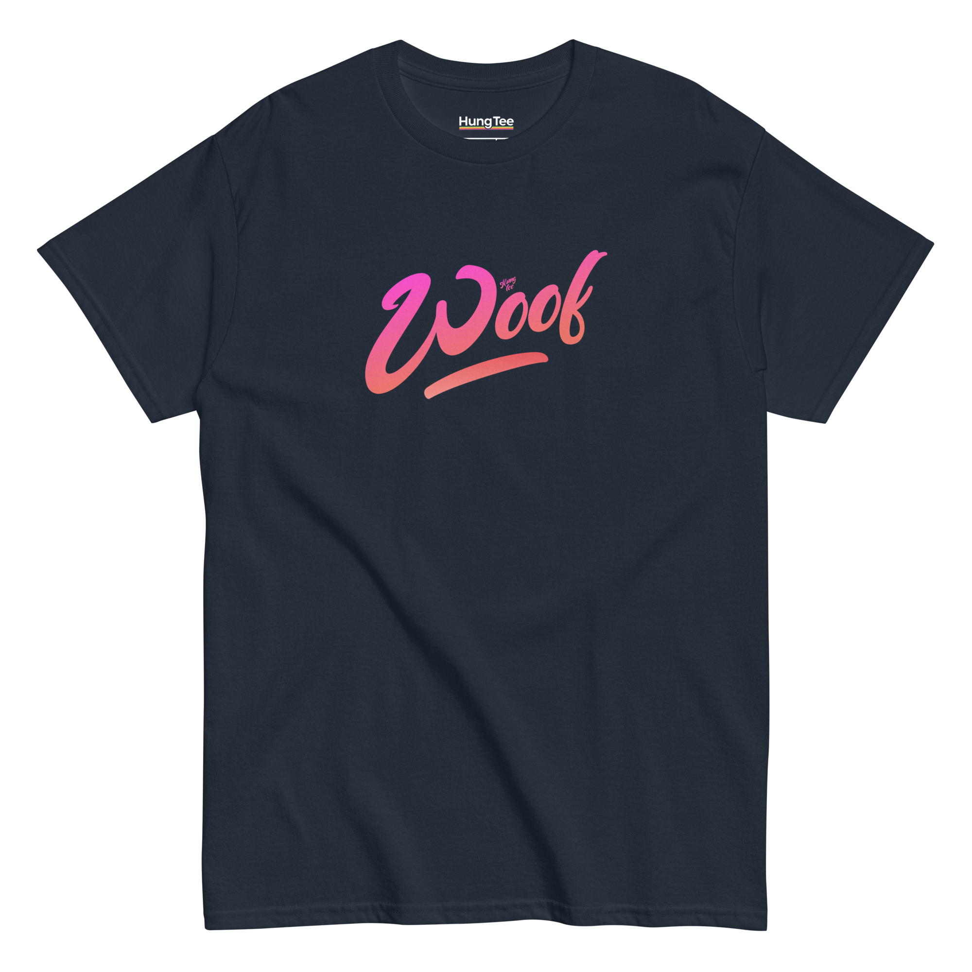 One word, full sentence. Bright script with a wag, not a bark. Playful, flirty, and obvious enough that even my barber got the hint. I wore it once and a labrador followed me home. We are negotiating custody.